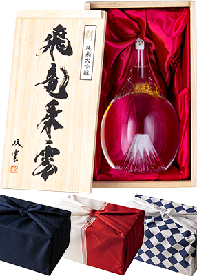 富士山に金箔が舞うボトル意匠も華やか。香味バランスのよい純米大吟醸