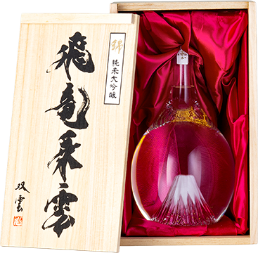 富士山に金箔が舞うボトル意匠も華やか。香味バランスのよい純米大吟醸