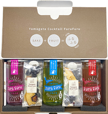 振って美味しい、フルーツジャムが入った日本酒カクテルとドライフルーツのセット