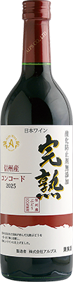 アルプス『完熟コンコード』《赤》フレッシュ&ジューシーな定番新酒、果実味豊かなやや甘口信州桔梗ヶ原特産のとりたて完熟コンコード種で醸した、やや甘口の赤ワイン。甘くフルーティな香り、渋みが少なく果実味豊かで、フレッシュ&ジューシー。食中はもちろん、食後のひとときにもぴったりです。 [タイプ]やや甘口(ミディアム)・酸化防止剤無添加 参考本体価格(10%税込)