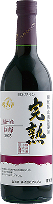 日本有数のブドウ産地信州の、"葡萄の里"と呼ばれる標高約700mの高原「桔梗ヶ原」。色づきが良く味わい深いぶどうが育つのは、少ない年間降雨量・長い日照時間・昼夜の寒暖差などブドウ栽培に適した環境に恵まれているおかげです。その約400軒の栽培農家と契約し、信州ならではのワインを醸しています。『完熟』シリーズは一房一房丁寧に手摘みされた旬の完熟ブドウだけを使用し、酸化防止剤無添加で醸造した新酒。信州産のブドウ新酒を10月初旬に楽しめるのはアルプスだけ。フレッシュ&フルーティな味わいをいち早くお楽しみいただけます。