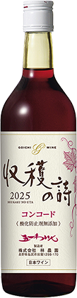 アルプス『完熟巨峰』《赤》巨峰の香気とジューシーな甘やかさで人気「ぶどうの王様」と呼ばれる大粒の信州産巨峰を100%使用した甘口の赤ワイン。淡く優しいフレッシュ感、巨峰ならではの香気とフルーティでジューシーな果実味ある美味しさは、ワイン初心者から飲み慣れた方まで人気です。日本の家庭料理との相性も抜群。 [タイプ]やや甘口(ミディアム)・酸化防止剤無添加 参考本体価格(10%税込) 五一わいん『収穫の詩』(株)林農園【長野・塩尻】 凝縮感のある果実味と香りを楽しめる。老舗ワイナリーの上質な味わい